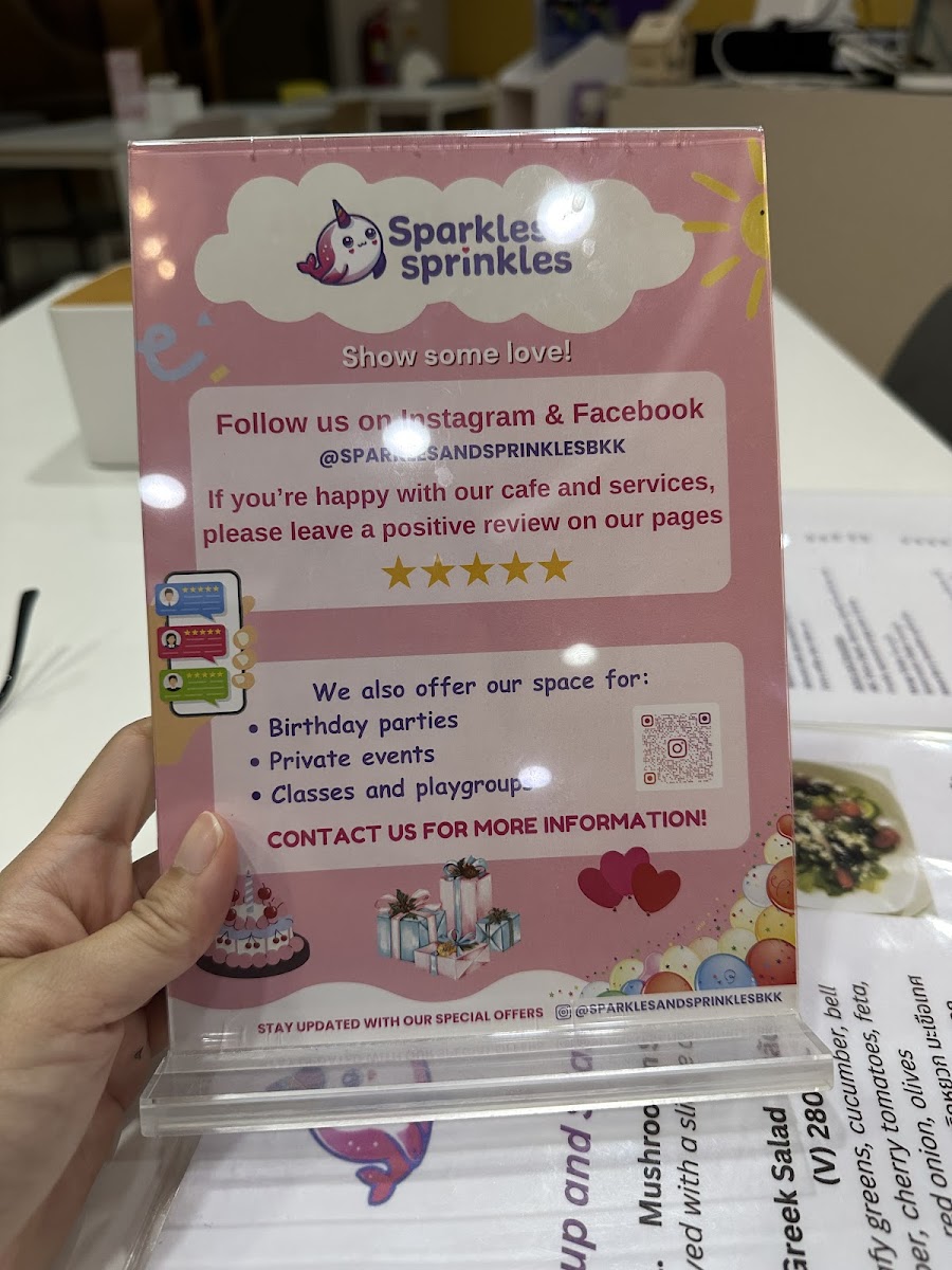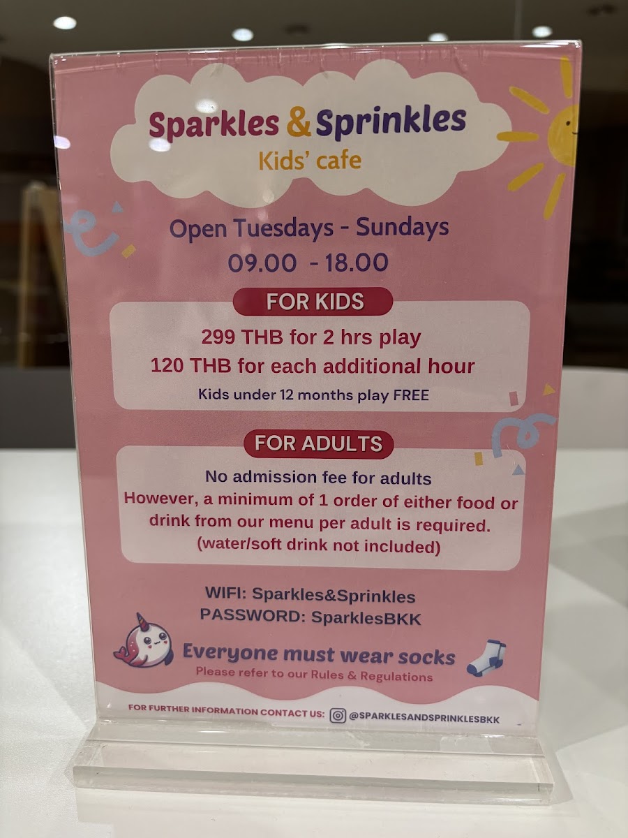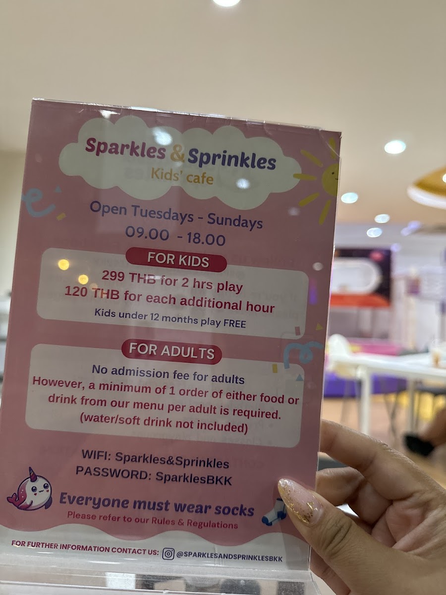 Sparkles & Sprinkles Kids' Cafe คาเฟ่เด็กสปาร์คเคิลส์แอนด์สปรินเคิลส์ Menu